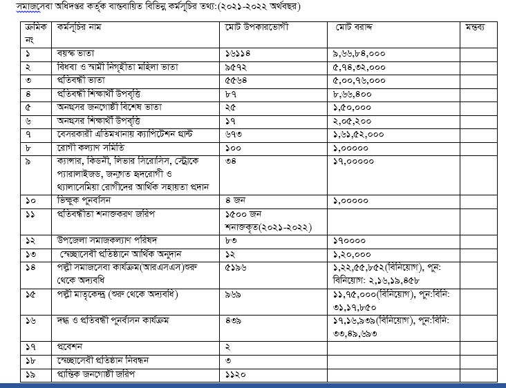 উপজেলা সমাজসেবা কার্যালয়, পার্বতীপুর, দিনাজপুর এর মাধ্য সামাজিক নিরাপত্তা, দারিদ্র বিমোচন, প্রবেশন এবং সেবামূলক বিভিন্ন কার্যক্রম বাস্তবায়ন করে আসছে। সামাজিক নিরাপত্তা বয়স্ক ভাতা, বিধবা ও স্বামী নিগৃহীতা মহিলা ভাতা, প্রতিবন্ধী ভাতা, প্রতিবন্ধী শিক্ষার্থী উপবৃত্তি, অনগ্রসর জনগোষ্ঠী ভাতা ও শিক্ষা উপবৃত্তি, বেসরকারী এতিমভানায় ক্যাপিটেশন গ্রান্ট প্রদান সহ বিভিন্ন সামাজিক নিরাপত্তা কর্মসূচি বাস্তবায়ন করে আসছে। দারিদ্র বিমোচনে পল্লী সমাজসেবা কার্যক্রম (আরএসএস), পল্লী মার্তৃকেন্দ্র (আরএমসি), দগ্ধ ও প্রতিবন্ধী পুনর্বাসন কার্যক্রম বাস্তবায়ন করছে। সেবা অনুদান এর ক্ষেত্রে রোগী কলাণ সমিতির মাধ্যমে গরীব রোগীদের ওষুধ/পথ্য ক্রয়, ক্যানসার কিডনী লিভার সিরোসিস স্ট্রোকে প্যারালাইজড, জন্মগত হৃদরোগী লিভার সিরোসিস এবং থ্যালাসেমিয়া রোগীদের আর্থিক সহায়তা প্রদান। এছড়া প্রবেশন, ভিক্ষুক পুনর্বাসন, প্রতিবন্ধী শনাক্তকরণ জরিপ, স্বেচ্ছাসেবী প্রতিষ্ঠান মনিটরিং ও আর্থিক অনুদান প্রদান সহ বিভিন্ন কার্যক্রম বাস্তবায়ন করা হয়।
